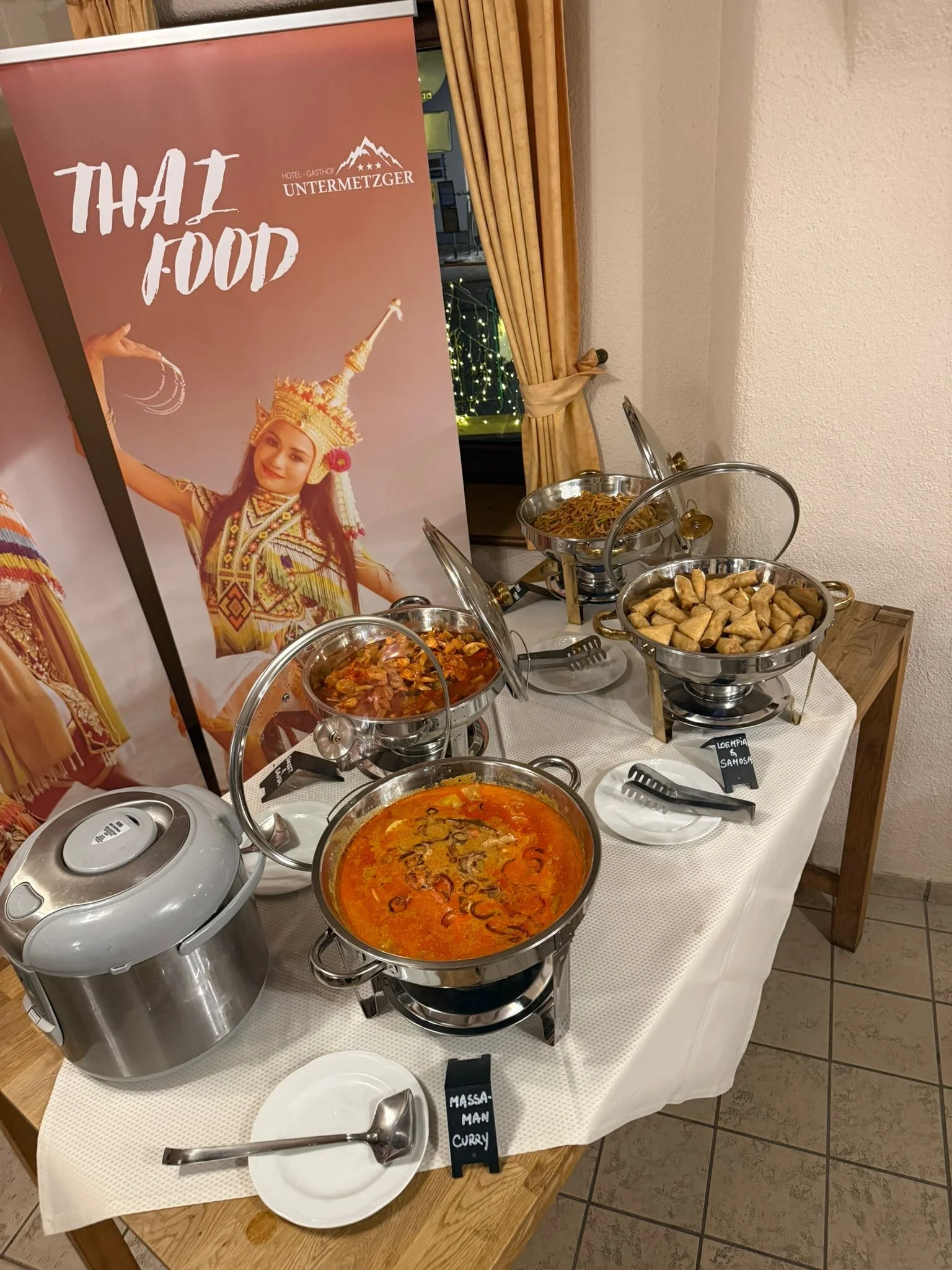 Besuchen Sie uns sicher am Mittwoch. Jedem Mittwoch bietet Gasthof Untermetzger eines ‘All-you-can-eat’ Thailandisches Buffet ab 18 Uhr.